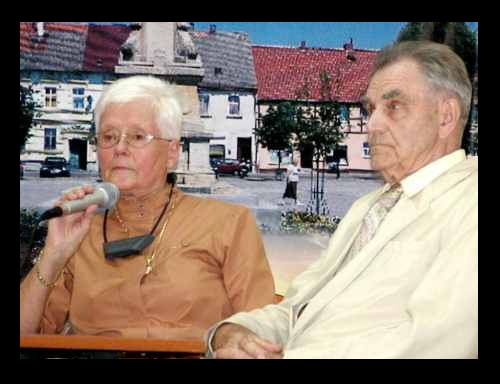 Często już opisywaliśmy tę dramatyczną i romantyczną historię niczym z hollywoodzkiego filmu. Elwira Profé przed II wojną i w czasie jej trwania mieszkała w Mieszkowicach (wówczas Bärwalde) jako córka właściciela fabryki drewnianych miarek. Gdy w 1945 roku przyszli Sowieci, wywieźli ją do syberyjskiego łagru, gdzie poważnie zachorowała. Pozwolono jej wrócić do Niemiec i znalazła się we Frankfurcie nad Odrą. Od ciotki dowiedziała się, że jej rodzice są nadal w Bärwalde. Przez Odrę na jej wschodni brzeg przewieźli ją polscy wędkarze. W Mieszkowicach poznała Fortunata Mackiewicza - młodego Polaka, który zaraz po wojnie przyjechał tu z Wileńszczyzny. Zakochali się w sobie, ale z powodów politycznych na ślub nie było szans i historia rozdzieliła ich. W 1947 roku Elwira z rodziną i innymi ostatnimi Niemcami musiała opuścić rodzinne miasto. Zamieszkała na zachodzie kraju, a potem w Berlinie Zachodnim, pracowała na rzecz osób niepełnosprawnych. Fortunat wyjechał na Mazury. Przez blisko pół wieku nie widzieli się i nie mieli kontaktu. Ona odwiedziła Mieszkowice dopiero w 1991 roku i powiedziano jej, że Mackiewicz umarł. Ale na szczęście to nie była prawda i odnaleźli się, razem wrócili do Mieszkowic, wybudowali sobie dom i w 2005 roku wzięli ślub. Ona miała wówczas 80 lat, a on 84. Połączyli swe losy i nazwiska, bo przyjęli podwójne: ona Profé-Mackiewicz, on Mackiewicz-Profé. Mimo sędziwego wieku pani Elwira była bardzo aktywna na polu społecznym i charytatywnym, a nawet prowadziła aerobik dla mieszkowiczanek. Bardzo szanowała ją lokalna społeczność i miejscowe władze, nadając w 2004 roku tytuł „Zasłużony dla Gminy Mieszkowice”. Oboje często uczestniczyli w lokalnych wydarzeniach i uroczystościach. Niemiecka telewizja ZDF nakręciła i wyemitowała w 2006 roku fabularyzowany film dokumentalny o nich pt. „Miłość nad Odrą”. We wrześniu 2018 w Miejsko-Gminnym Ośrodku Kultury można było obejrzeć przygotowane przez gorzowskich aktorów przedstawienie oparte na losach Elwiry i Fortunata.