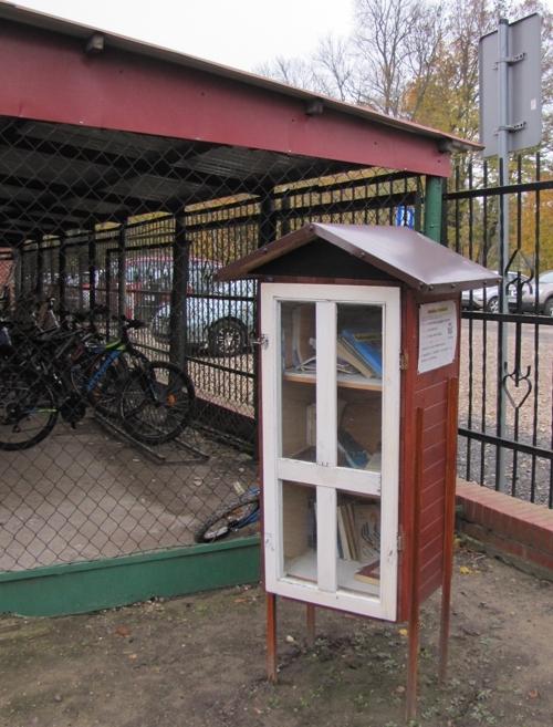 Działający na takiej samej zasadzie regał stoi przed wejściem do Miejskiej Biblioteki Publicznej w Chojnie (w holu ratusza).