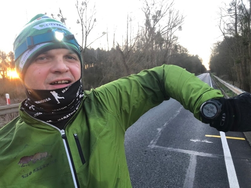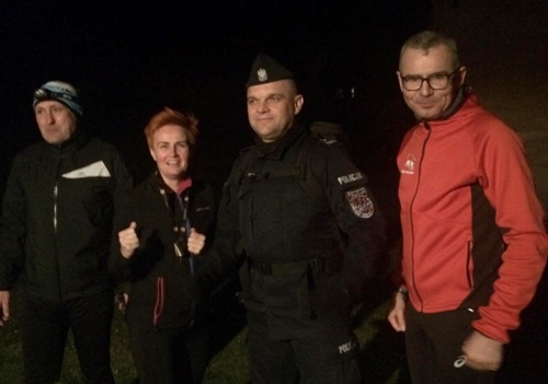 Kilkukrotny uczestnik tej imprezy – mł. inspektor Mariusz Łętowski (oficer policji z Nawodnej, pracujący jako zastępca komendanta miejskiego w Szczecinie), jak mówi, z uwagi na charakter swej pracy nie pojechał do Lublińca, ale przy pomocy przyjaciół przebiegł te 100 km koło domu, choć może niedosłownie. – Baza była u mnie w domu w Nawodnej, a stamtąd asfaltowo-szutrowo-leśna trasa Bara – Chojna – krzyżówka Krzymów – Garnowo – Nawodna i tak kilka razy. Udział w biegu przebiegał honorowo zgodnie z regulaminem: 13 marca o godz. 21.40 ważenie plecaka (10,8 kg), o 22 start w kierunku Chojny – relacjonuje nam biegacz. – Pierwsze 20 km biegłem w mundurze polowym policji w wysokich butach i oczywiście z plecakiem. Następne 20 km bieg tylko w mundurze i wysokich butach, pozostałe 60 km w stroju sportowym. Finalnie 100,13 km osiągnąłem po 14 godzinach 19 minutach i 4 sekundach. To czas jak dla mnie rewelacyjny. Na pewno brakowało bezpośredniej rywalizacji i kontaktu z innymi zawodnikami. Choć ja i tak byłem szczęściarzem, bo na całej trasie miałem towarzystwo przyjaciół, którzy się zmieniali przez całą noc. Przy pierwszych 20 km wspierał mnie Darek Makowski, kolejne 20 km Gosia Jaz, następne 40 mój partner rzeźnikowy Krzysiek Jaz [wielokrotnie uczestniczył razem z Mariuszem Łętowskim w ekstremalnym Biegu Rzeźnika w Bieszczadach - red.]. Na ostatnich 20 kilometrach dopingowali mnie wspólnie Gosia i Krzysiek. Na mecie, ku mojemu zaskoczeniu, czekał na mnie szampan i puchar przygotowany przez przyjaciół. Bez ich wsparcia i motywacji byłoby bardzo ciężko. Bardzo chciałbym im podziękować za to poświęcenie – mówi nasz biegacz.